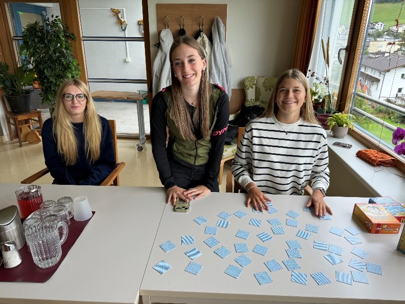 Am Donnerstag in der 2. Schulwoche hatten wir – Eleonora, Aurelia, Sophia, Layla, Eva und ich – unseren Projekttag in der SeneCura in Schwaz. Wir durften mit den Heimbewohner:innen einen Nachmittag gestalten: Aurelia und ich spielten mit den einigen Mensch ärgere dich nicht, Jenga, Halli Galli und Memory. Layla und Eleonora dekorierten mit anderen Senior:innen die Kekse, die Eva mitgebracht hatte, und zeigten auch ihre Malkünste. Mit Sophia und Eva wurden kreative Namensschilder für die Türen gebastelt, Stadt – Land – Fluss gespielt und nette Gespräche geführt. Alles in allem war es ein schöner Nachmittag; wir erfuhren viel von den Bewohner:innen und deren Leben. Am späten Nachmittag mussten wir die SeneCura leider wieder verlassen, da das Abendessen vorbereitet wurde. Wir fanden dieses Projekt sehr lehrreich, hatten eine Menge Spaß und durften auch ein bisschen hinter die Kulissen schauen. – Julia Lengauer, 2 FHW